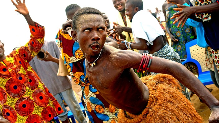a partir de las creencias que poseían los pueblos que fueron trasladados como esclavos desde el África Occidental, del contacto de estas creencias con la religión cristiana propia de los países a donde fueron trasladados, y es posible que esté influido parcialmente por supervivencias del politeísmo céltico. Se trata de una variante teísta de un sistema animista, provisto de un fuerte componente mágico. Por su vinculación directa con la cosmología y los sistemas de creencias neolíticos, su estudio resulta de gran interés en el campo de la paleoantropología. El vudú se encuentra entre las religiones más antiguas del mundo, entre el politeísmo y el monoteísmo. El tráfico de esclavos hacia América produjo un fuerte fenómeno de sincretismo entre esta compleja y bien esquematizada religión y las creencias cristianas, así como con las religiones nativas de los lugares a donde se transportó a los esclavos. De aquí surgiría el vudú haitiano y un gran número de derivativos: la Regla de Ocha o Santería en Cuba, la Santería en República Dominicana, el Candomblé, la Umbanda y Kimbanda en Brasil, así como las manifestaciones africanistas en Puerto Rico y los demás países del área del Caribe, etcétera. Algunos de estos derivativos han llegado a Europa en décadas recientes, sobre todo de la mano de emigrantes retornados.